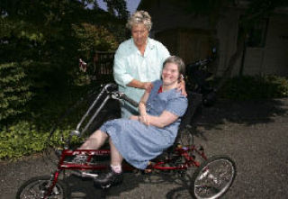 Tracy Stearns has an infectious smile. Seated on a shiny red modified bicycle, she peddals around the driveway outside her home at the Kelsey Creek House, a Bellevue group home that she shares with six other adults with developmental disabilities.