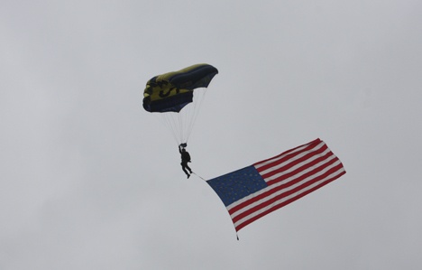 U.S. Navy Leap Frogs also paid a visit to the event, parachuting into Surrey Downs Park during a respite from the workouts.