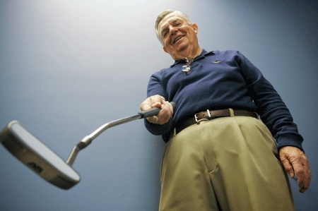 Perry’s company, Just Putt’n Around, originally came about due to his passion for helping seniors enjoy the game of golf. Perry created a special putter, the Active Adult Putter, to allow those in wheelchairs or rolling walkers to putt. Perry began to visit adult communities in King County, giving seniors the chance to participate in putting lessons and competitions.