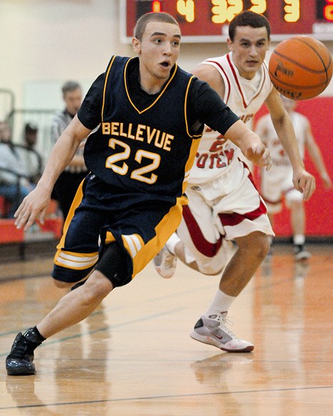 Bellevue led 31-27 at the half but the Totems came charging back in the third quarter and briefly took the lead when sophomore guard John Steinberg hit three three-pointers in the opening minutes of the half.