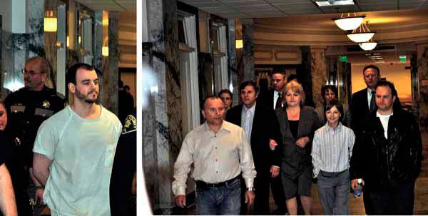 The hearing took place in a much larger courtroom in Superior court on the ninth-floor, not Judge Canova’s chambers as they did in the five month-long trial. An unshaven Schierman was led out of the jail freight elevator in “high security inmate” clothes and entered the chambers after walking down a hallway that was sealed off to spectators.