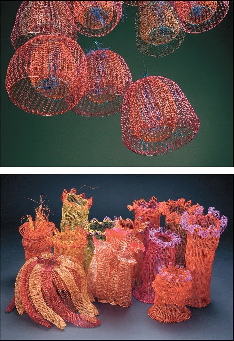 For almost 40 years, world-renowned jewelry artist Arline Fisch has rarely created anything but jewelry. Creatures from the Deep, originally commissioned by Racine Art Museum in 2008, challenged the artist to bring her work to a grand scale, using knitting and crocheting techniques to create “families” of jellyfish out of her signature color-coated copper wire.