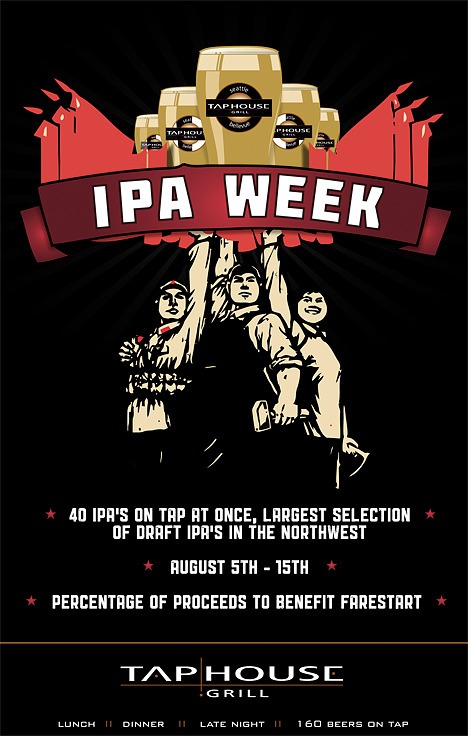 A percentage of Tap House Grills IPA Week sales will be donated to Farestart in Seattle, a culinary job training and placement program for homeless and disadvantaged individuals.