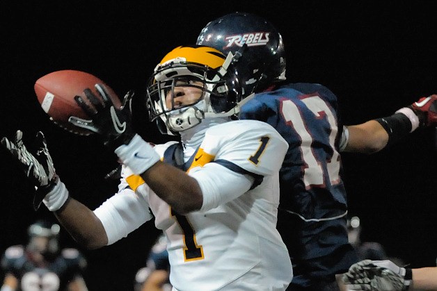 Then Juanita finally broke through. Behind the strong legs of Jeremiah Laufasa, who rushed for a game-high 144 yards, the Rebels drove from their own 1-yard line down to the Bellevue 20. That’s when Kaufman hit Austin Hilliker in the right side of the end zone and the senior fought off two Bellevue defenders to haul in the touchdown pass that halved Bellevue’s lead with under a minute left in the first half.