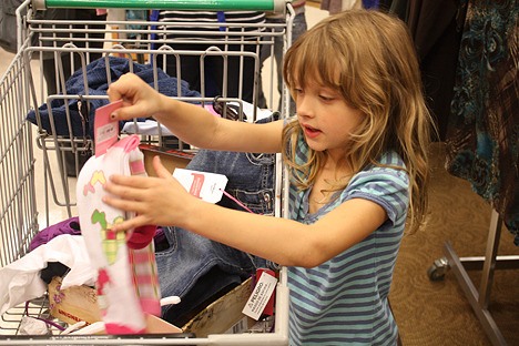 A designated area was set up by Bellevue Fred Meyer for the private shopping event. Volunteers wearing blue Assistance League aprons walked around the clothing department with scanners and calculators to help parents budget accordingly. For the first time this year, Fred Meyer opened up their registers at the back of the store for a private checkout area.