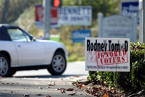 Last week, signs all over Bellevue popped up with accusations that 48th District state Sen. Rodney Tom (D-Bellevue) “ignored voters” when he voted to suspend Initiative 960, requiring a two-thirds majority on new taxes, to help balance the budget in January. Voters passed the measure in 2007 by a 51-48 margin. Tom was one of 26 state senators to vote in favoring of suspending the initiative with 21 against.