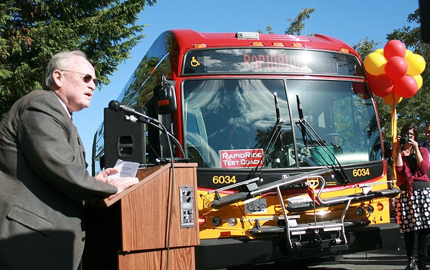 “We had to reconfigure so many services,” said King Councilmember Jane Hague, who represents parts of Bellevue. “But we kept our priorities straight and that is making sure you got transit for your needs. … I’m really excited about this new RapidRide — the second to be launched in King County — because it connects jobs and the economy and connects our Eastside.”