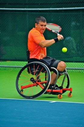 A major part of that process was getting involved in wheelchair athletics. He started with wheelchair road races and 10Ks, eventually finding his way to a wheelchair tennis clinic he read about in the newspaper. He went to the clinic with an open mind, planning on observing and possibly making some new connections.