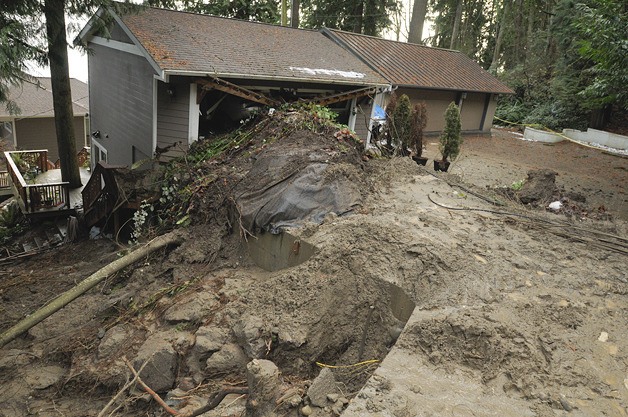 Crews continue to assess and cleanup a mudslide in the 500 block of West Lake Sammamish Parkway Southeast that forced the evacuation of four homes