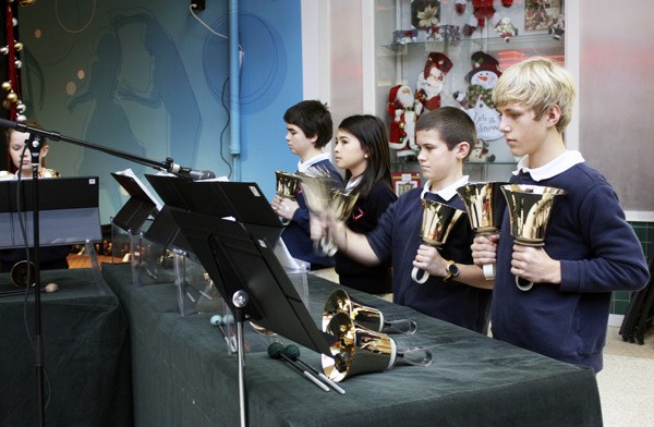 Those visiting Crossroads on last week were met with holiday cheer as students from Holy Family Parish School in Kirkland performed handbells at the mall’s Market Stage.