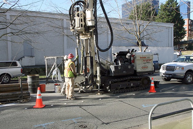 Sound Transit expects the fieldwork to be relatively unobtrusive, except for projects on private property and the occasional road work. Last week, crews drilled on 110th Avenue in downtown Bellevue. Except for occupying a portion of the turn lane, traffic flowed north and south around the drill.