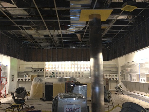 The drop ceiling of its suite on the first floor of the mall was completely removed, as was flooring, while industrial fans dried out saturated finishings. The employee said roughly 200 gallons of water came spilling through light fixtures, air vents and basically any other crevice when a torrential downpour left several occupants of the mall without power and inundated with water.