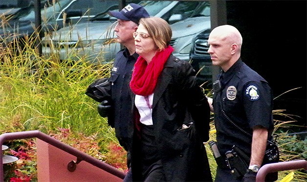 Those arrested were all women, she said, adding 75 percent of immigrants in the United States are women and children. They entered the GOP headquarters and refused to leave. Bellevue Ofc. Carla Iafrate said all were arrested for first-degree trespassing. Peggy Lynch, wife of Seattle Mayor Mike McGinn, was among the 33 women arrested and later released.