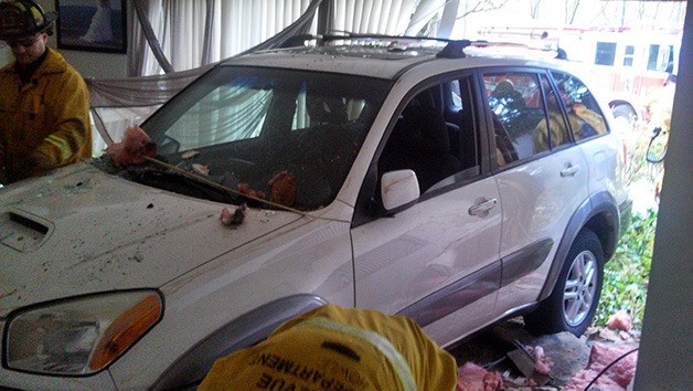 Two residents in an apartment on the 16200 block of 13th Place Northeast were uninjured this morning when a 43-year-old man confused the accelerator for the brake of his 2003 Toyota RAV 4, driving it through their first-floor unit.