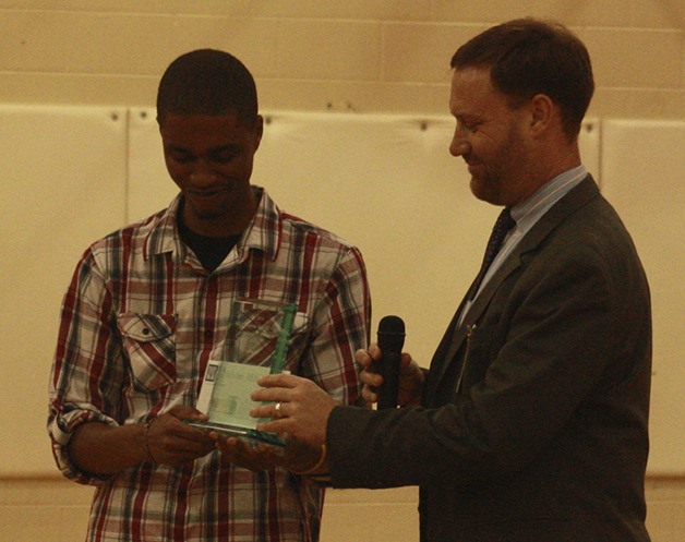 The Community Partners award was given at Tillicum Middle School, where site activities coordinator Jonathan George received it on behalf of the organization in front of an audience of students in “Club Jubilee.” The club currently operates athletic and academic programs in seven middle schools and one elementary. The program began with a single soccer team at Highland Middle School; today, its scope encompasses seven middle schools and one elementary.