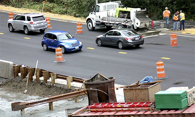 A new bridge under construction on Coal Creek Parkway is slated for completion in mid-October, opening up a major arterial above and clearing the way for migrating salmon below.