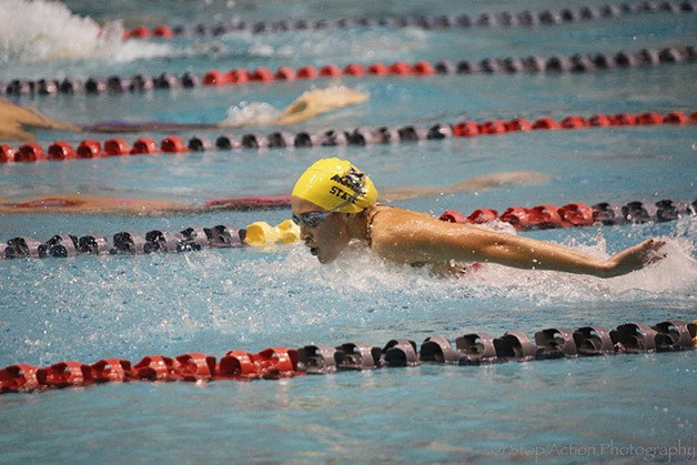 Bellevue Wolverines senior Kim Williams put together a memorable performance at the Class 4A state swim and dive championships on Nov. 15 at the King County Aquatic Center in Federal Way. Williams captured first place in the 200 individual medley clocking a blistering time of 2:00.35, breaking the previous meet record she set of 2:01.20 in 2012. Williams also finished in first place in the 100 breaststroke with a time of 1:01.80.