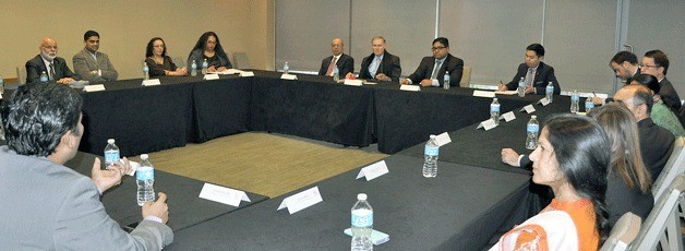 Gov. Jay Inslee meets with community and business representatives from the Washington state Indian community in a Indian Diaspora forum on Dec 11 at The Westin Bellevue. It was Inslee's first round table with the local Indian Diaspora after being elected governor. Various topics were discussed including ideas to improve the state economy