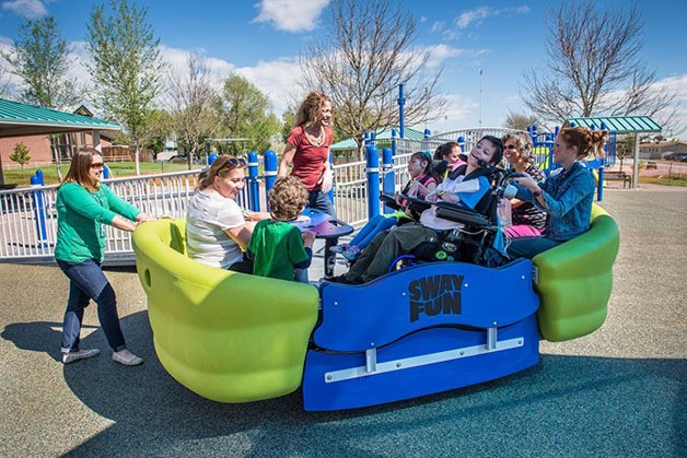 A wheelchair-accessible swing with benches for multiple passengers, the SwayFun Glider will be decked out in Seahawks colors.