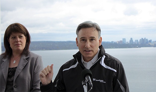 King County Executive Dow Constantine and Bellevue Mayor Claudia Balducci joined together over the Interstate 90 bridge on Monday to announce a tentative agreement with Sound Transit for East Link light rail service that will save the city of Bellevue $60 million in contingency costs following construction of a downtown tunnel.