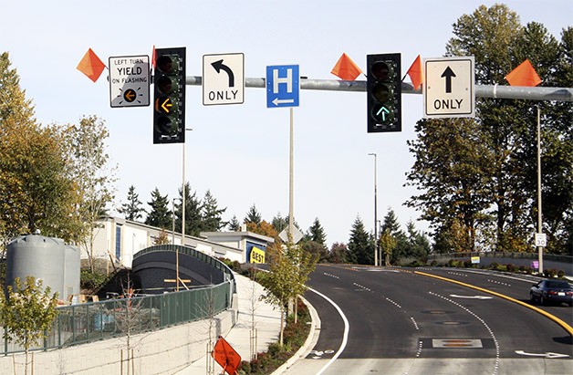 Despite the Federal Highway Administration’s findings and the fact that these lights have existed in Bellevue since 2010, at many of the newly installed lights in the city, special signage marked with orange flags reminds motorists how to use the lights.