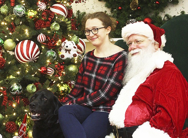 Marmaduke, left, poses with his human, Liala Cooney, and Santa Claus during a photo session at Crossroads Mall on Dec. 8. The Seattle Humane Society sponsored special photos with Santa for local canines.