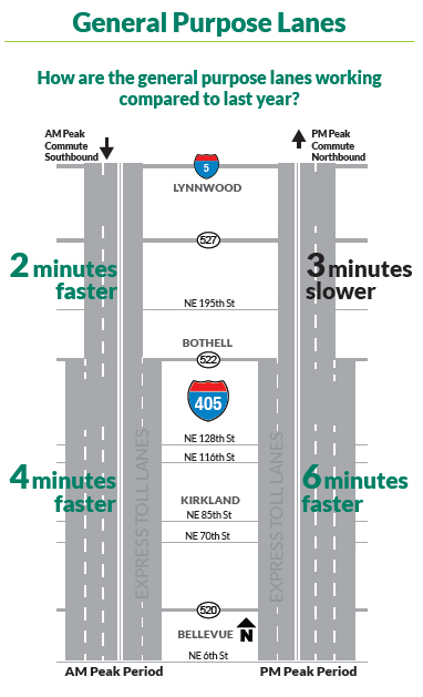 “While the numbers are encouraging, we know that some drivers have been impacted negatively. There are drivers whose trips, especially between SR 522 and SR 527, have seen slower speeds since express toll lanes opened,” she wrote. “We are working to expedite several adjustments, especially those to the northern section of the corridor, so that travelers will see improvement as soon as possible. This includes adding capacity through hard shoulder running.”