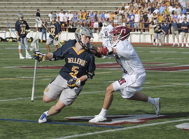 Getting eight goals from junior midfielder Augie Fratt, Bellevue stormed past Mercer Island 14-3, claiming the No. 1 seed out of KingCo Div. 1 in the state tournament. With Issaquah winning its league finale over Eastlake 12-6, Mercer Island will head to the postseason as the No. 3 seed out of KingCo. Both Mercer Island and Bellevue were tied atop the division standings leading into Friday’s contest, though the Wolverines (17-3, 13-1 in KingCo) looked very much the aggressor, creating turnovers throughout and capitalizing in transition. Bellevue forced Mercer Island (14-5, 12-2) into 11 first-half turnovers, with seven coming in the opening quarter.
