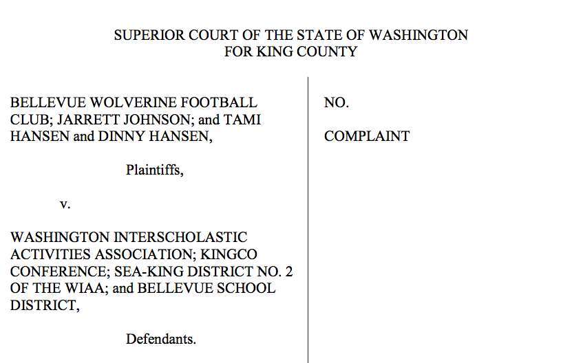 Parents of two incoming players joined the Bellevue Wolverines Football Club in the complaint against the WIAA, KingCo Conference, Sea-King District 2 and the Bellevue School District filed on Aug. 22. In it, they argued that the sanctions would harm students and the club, and that WIAA investigators did not follow the procedures for a fact-finding investigation laid out in the WIAA Handbook.