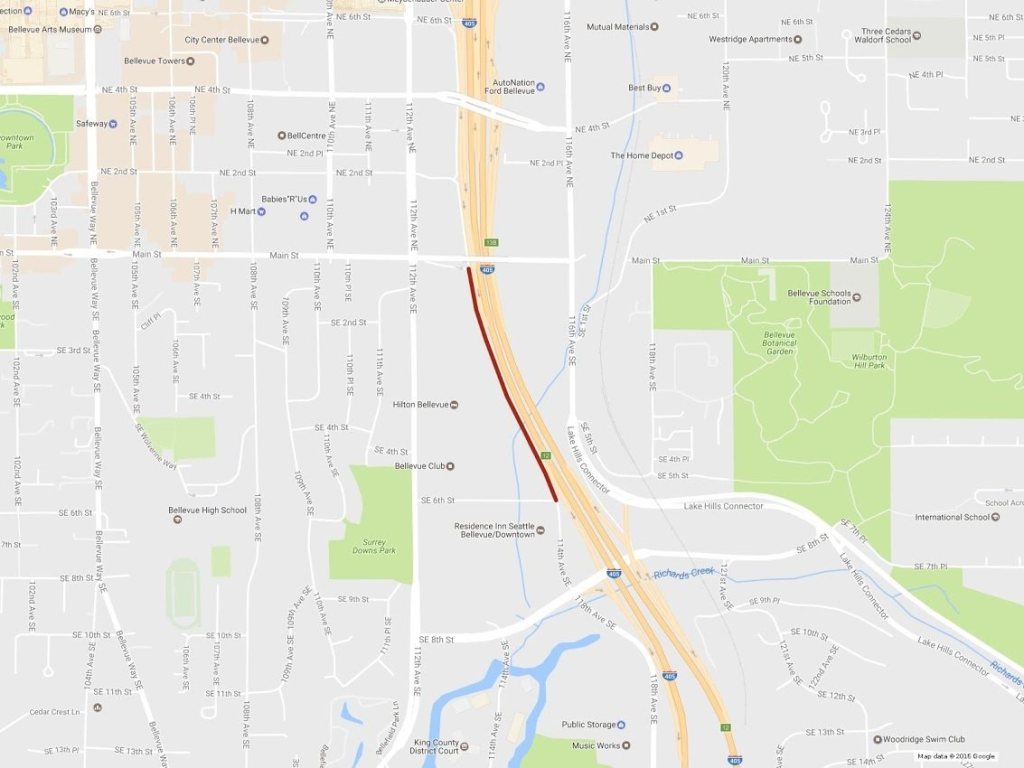 The public will be able to access local businesses, sidewalks on the road and the Wilburton park-and-ride via Southeast Eighth Street. To access I-405, commuters should use Northeast Fourth Street or Southeast Eighth Street via 112th Avenue Southeast.