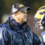 Mark Landes, center, was the Bellevue Wolverines football team’s interim head coach during the 2016 season. The Bellevue Football Twitter feed, @BellevueFB announced Landes was officially named the head coach of the Bellevue Wolverines football program on Jan. 23.