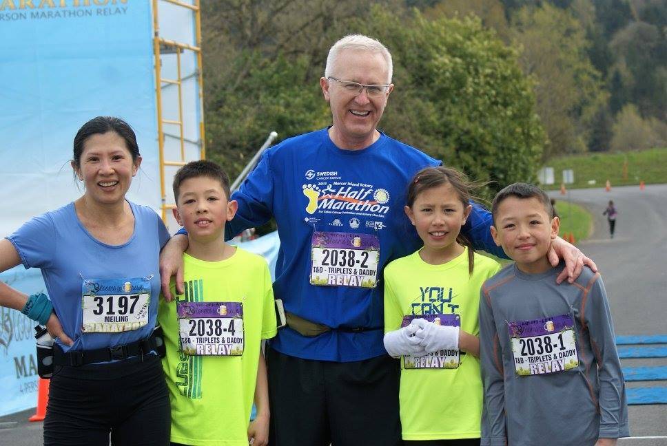 The kids ran the relay marathon with their dad and were the youngest participants, while Meiling ran the full marathon and placed first in her age group. The relay is split between four members, with each running about 6.5 miles.