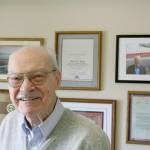 Brien Wygle stands in his office at the Bellettini retirement community. He was a pilot in World War Two, then a test pilot for Boeing and a hydroplane pilot for many years. Ryan Murray/staff photo