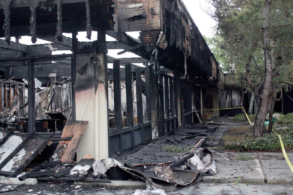 Located at 13427 NE 20th Street in North Bellevue, a total of nine occupancies were affected by the fire with several suffering major damage by fire and smoke. Dabuda, a soft play area and cafe, was destroyed. Neighboring TDI Motors, on the other prong of the “U” shaped building, was spared much of the worst damage.
