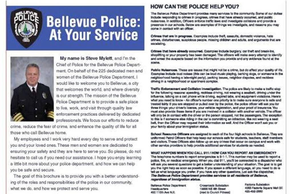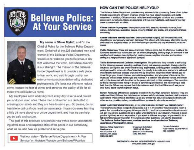 Bellevue police reach out to bilingual residents with ‘At Your Service’ brochures, video