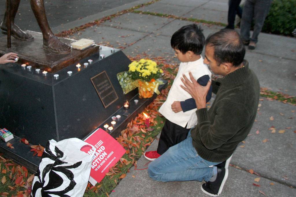 Twisha, who volunteers with the chapter but works at Microsoft Corp. full-time, said holding the vigil at Gandhi’s statue on Oct. 2, which is the birthday of the apostle of nonviolence and peace, was a “bitter irony.”