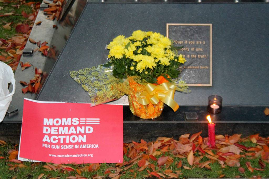 To honor the victims, one Bellevue resident with the Eastside chapter of Moms Demand Action for Gun Sense in America, organized a candlelight vigil. The peaceful demonstration was held at Bellevue Library’s Mahatma Gandhi statue Monday evening.