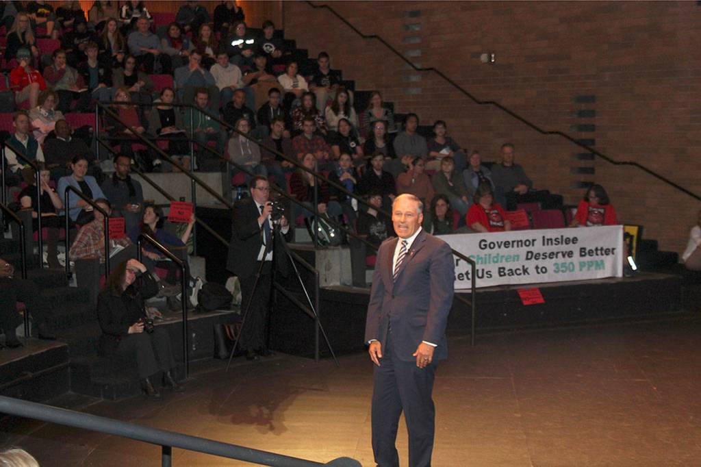 Gov. Jay Inslee spoke at a Climate Town Hall at Bellevue College on Thursday. Raechel Dawson/staff photo