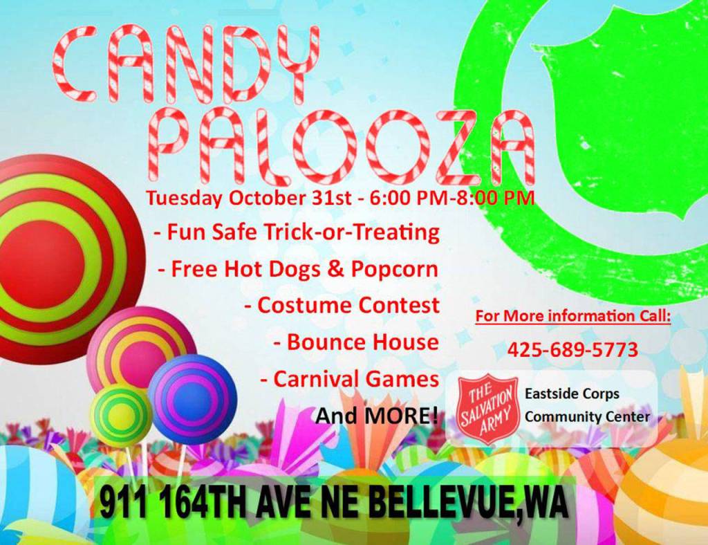 The whole family is invited. Candy Palooza will be from 6-8 p.m. Tuesday, Oct. 31 at 911 164th Ave NE, The Salvation Army – Eastside Corps Community Center. For more information, call 425-689-5773 or join the Facebook event.