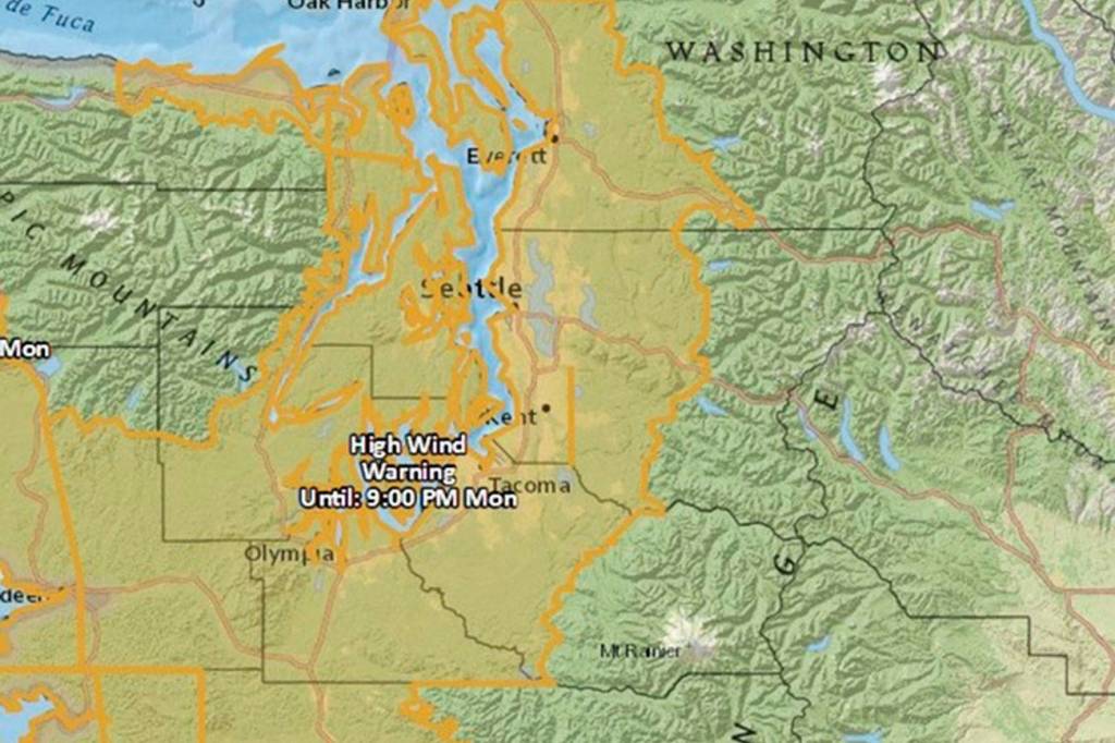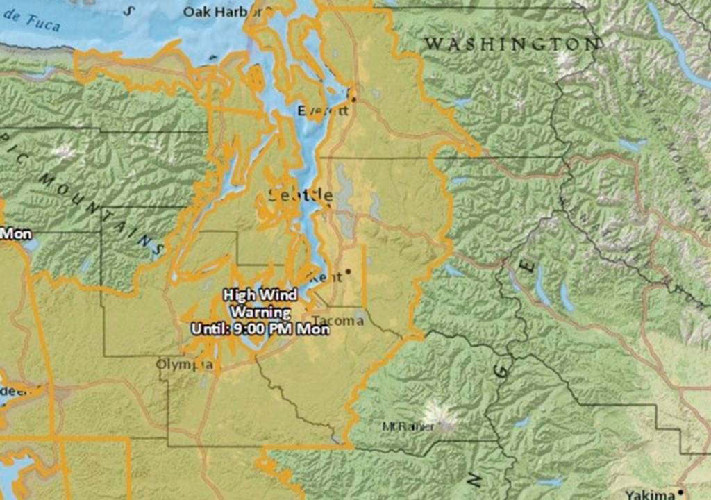 Monday’s wind advisory, made by the National Weather Service, has since been lifted and Puget Sound Energy expects power to be restored by 5 p.m. Tuesday.