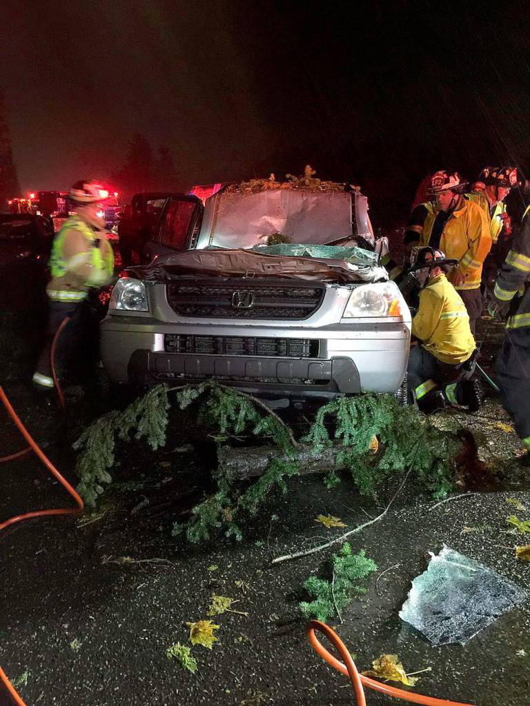 Washington State Patrol Trooper Rick Johnson said the woman was driving eastbound on I-90 in the Eastgate neighborhood when the windstorm knocked the tree on to her Honda Pilot near milepost 13. The woman was the sole occupant of the vehicle.