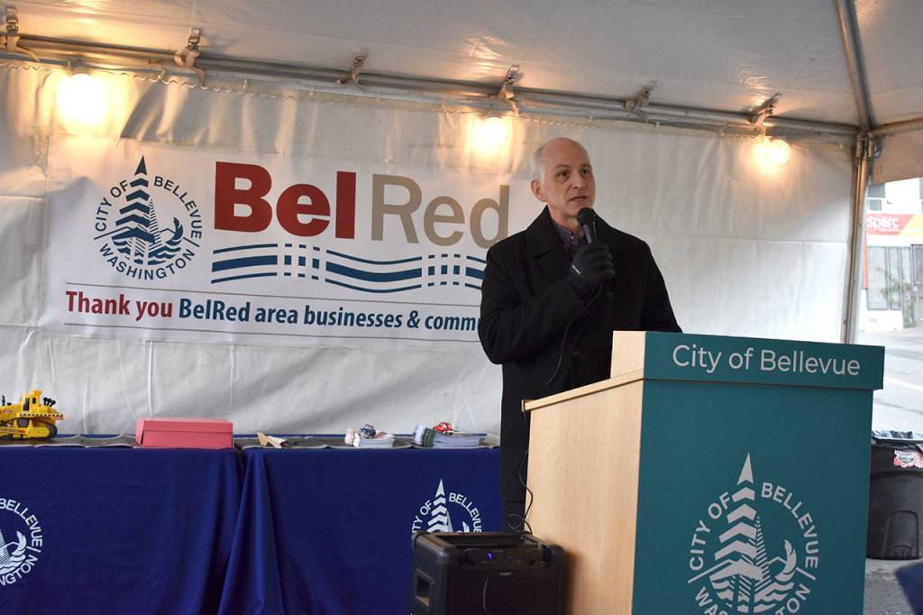 Congressman Adam Smith joined Bellevue governmental officials Friday morning to celebrate transportation projects in the BelRed neighborhood.