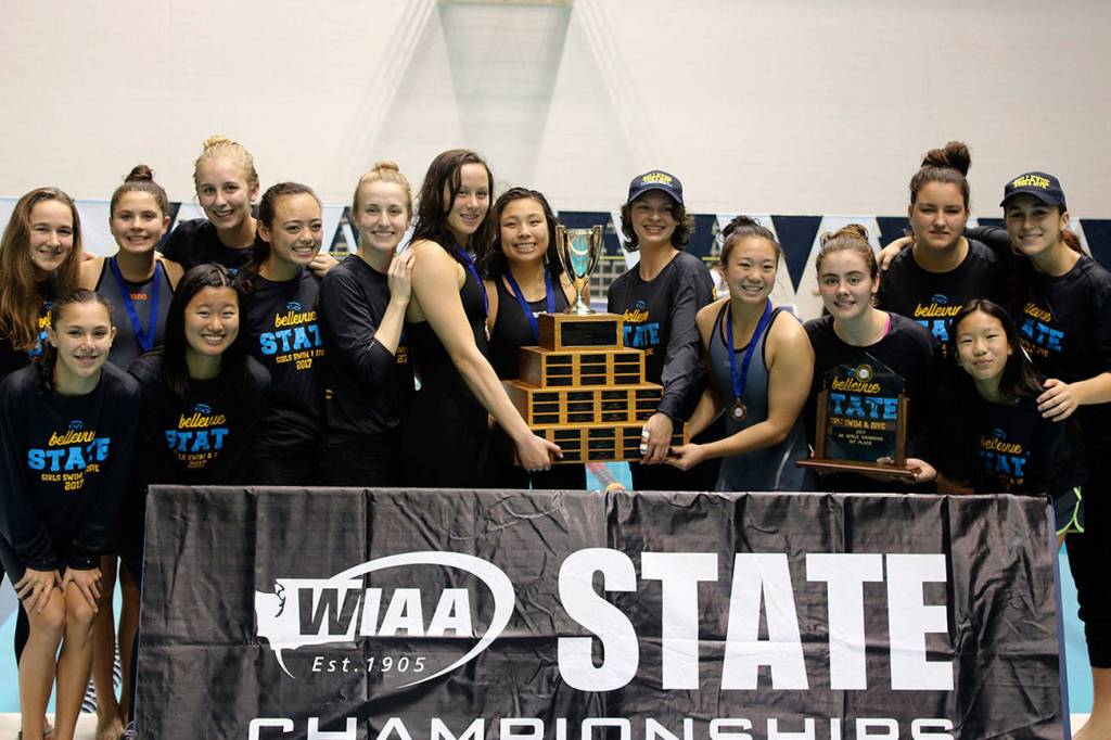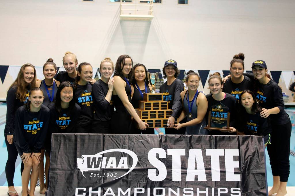 Bellevue girls swim wins state swim & dive championship: The Bellevue Wolverines girls swim and dive team earned the Class 3A state championship on Nov. 11 at the King County Aquatic Center in Federal Way. The Wolverines, who compiled a total of 281 team points, won a state title for the first time since the 2006 season. Bellevue athletes Elena Acevedo, Eleanor Casey, Katie Duff, Delora Li, Janelle Rudolph, Rylee Siripipat, Aneta Wyzga, Rachel Jin and Sarah Walsh competed at the state meet. The Wolverines were coached by Andy Hay, Lisa Van Loben Sels, Mckenzie Schroder, Oey Chang and Ale Fuentes.