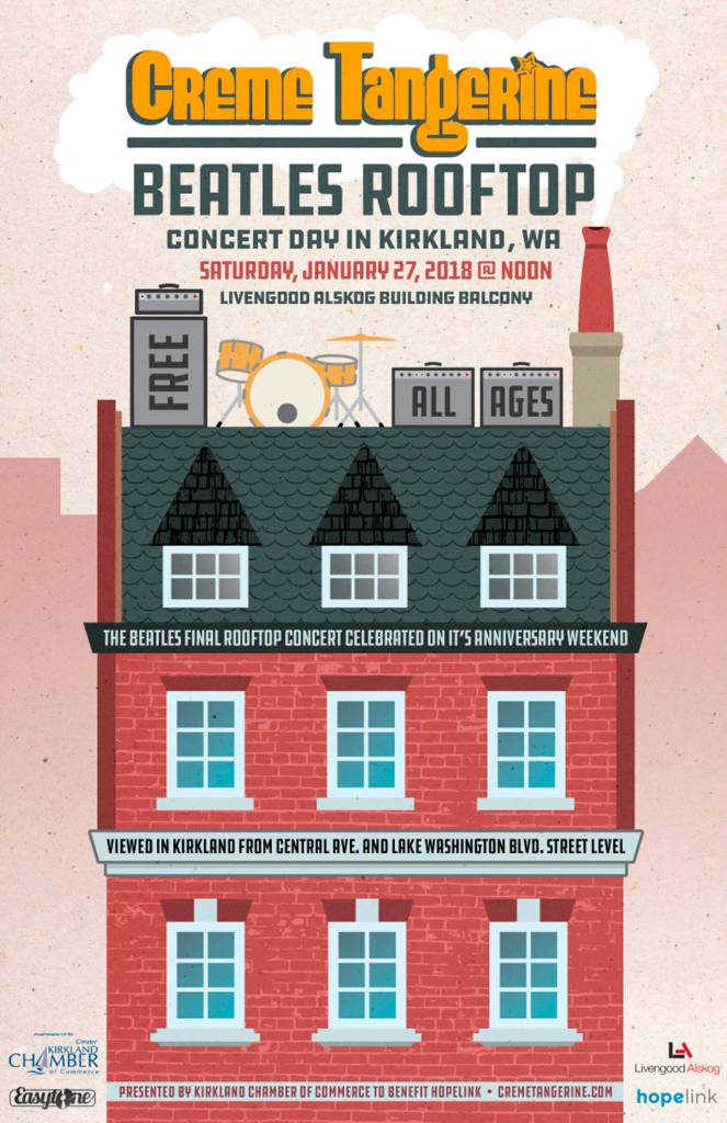 Continuing the annual tradition of blockbuster rooftop performances attended by thousands in Seattle locations, Crème Tangerine will celebrate the anniversary of The Beatle’s legendary last performance famously known as “the rooftop concert.”