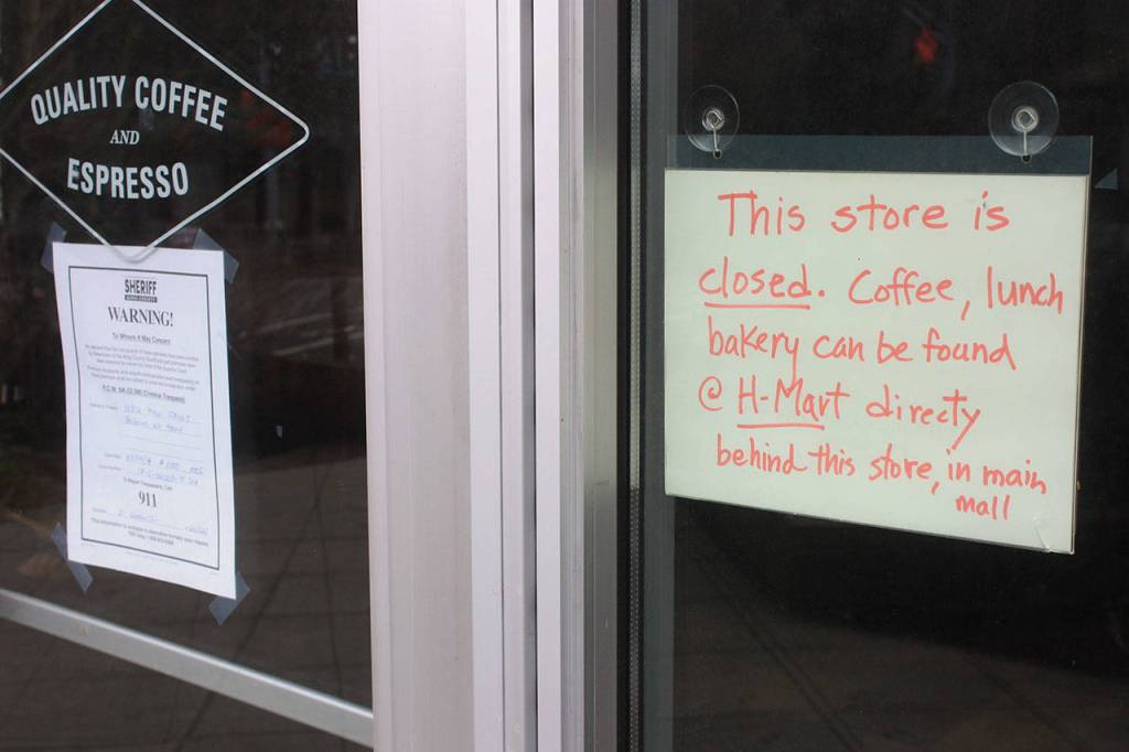 An eviction notice from the King County Sheriff’s Office was placed on the former Tully’s on March 23, stemming from unpaid rent totalling $21,285, court documents filed in King County Superior Court show.
