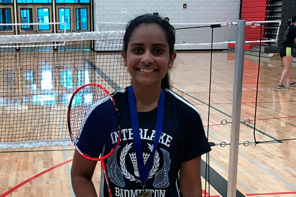 Photo courtesy of Wesley Newton                                Interlake Saints badminton player Anrushi Rao (pictured) earned first place in the singles tournament at the 2018 KingCo badminton tourney on May 2 at Sammamish High School in Bellevue.