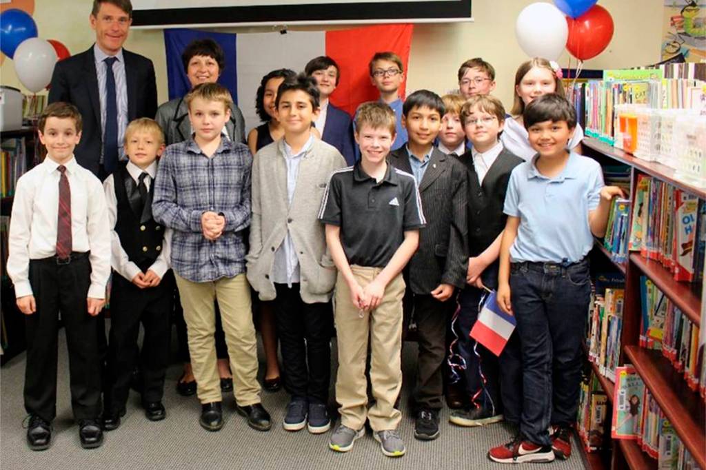 On the itinerary was a visit to Bellevue, where M. Lebrun-Damiens hosted the dedication of the French Immersion School of Washington library to retired Head of School Véronique Dussud, who founded FISW in 1999.