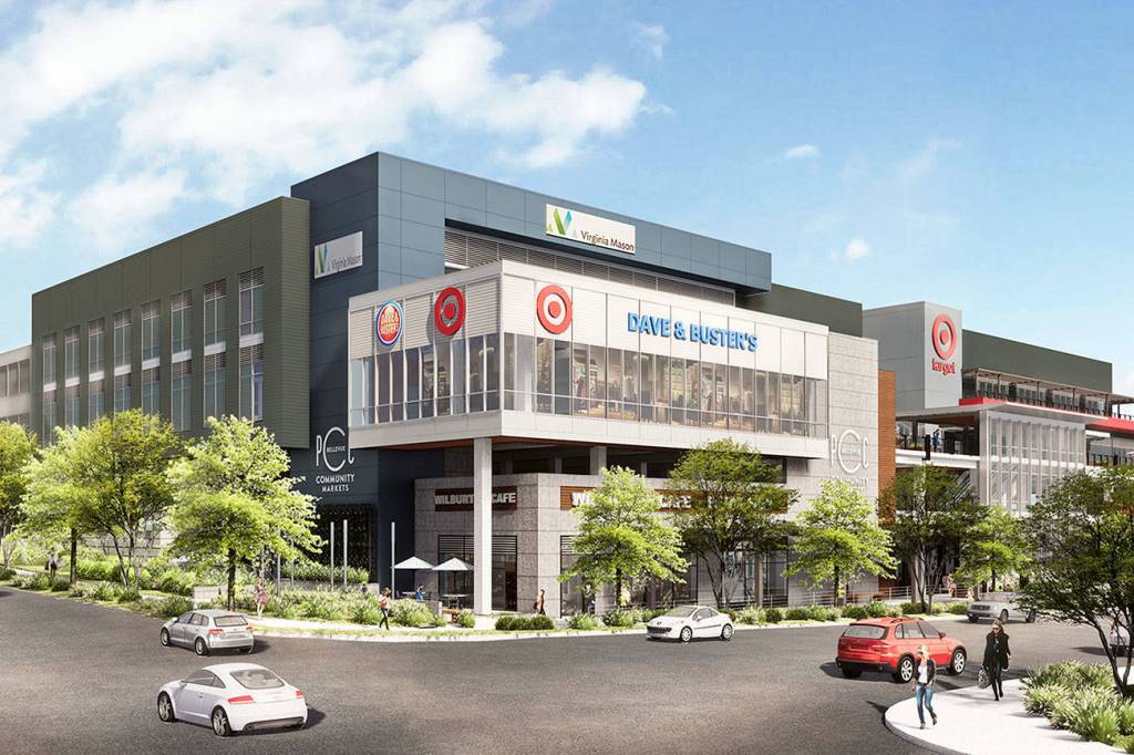 The first phase of the project was completed in September 2016 and houses an REI, Trader Joe’s and a HomeGoods on Northeast 4th Avenue and 116th Avenue Southeast, the second phase will be built directly to the south. Anchor tenants for the new development include a PCC, Target, Dave & Buster’s and a Virginia Mason with a combined space of 161,600 square feet and an additional 13,000 square feet of street-front retail space and more retail on the third floor. The project will have around 700 parking stalls.