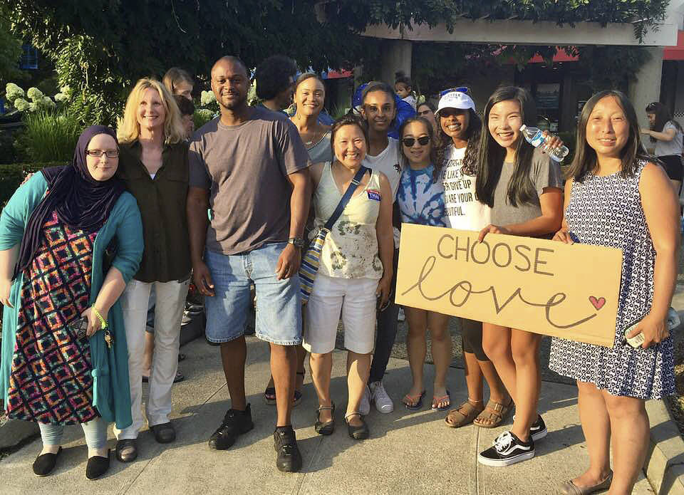 The anti-hate rally was planned by another local neighbor, Rebecca Schaechter, who works for the Anti-Defamation League in Bellevue. Schaechter created a private Facebook page for her friends and neighbors to organize an event, which quickly grew to include more than 700 people.