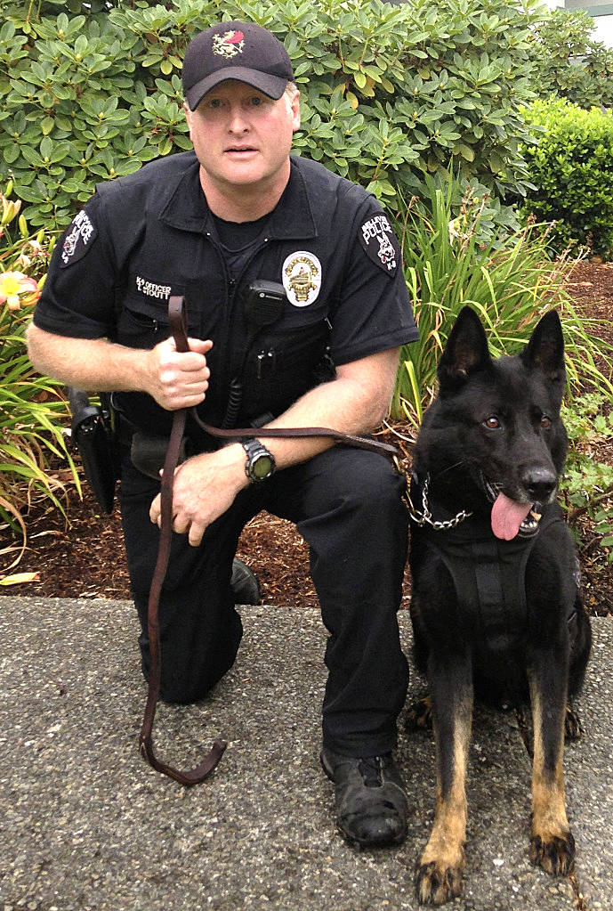 Bellevue Police K-9 Jack, shown here with his handler Officer Tim Stoutt, served the residents of Bellevue for more than seven years. Photo courtesy of the Bellevue Police Department